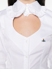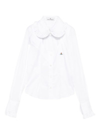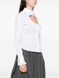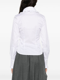 ruffled blouse Highlights - White - Ruffled collar - Front button fastening - Long sleeves - Ruffled cuffs - Logo detailing Made In Italy Composition Organic Cotton 72%, Polyamide 24%, Elastane 4% SIZE & FIT Model measurements Height 5 ft 11 in(1.8 m) Bust/Chest 32.28 in(82 cm) Hips 36.22 in(92 cm) Waist 25.19 in(64 cm) Washing instructions Read Manufacturer Guidelines