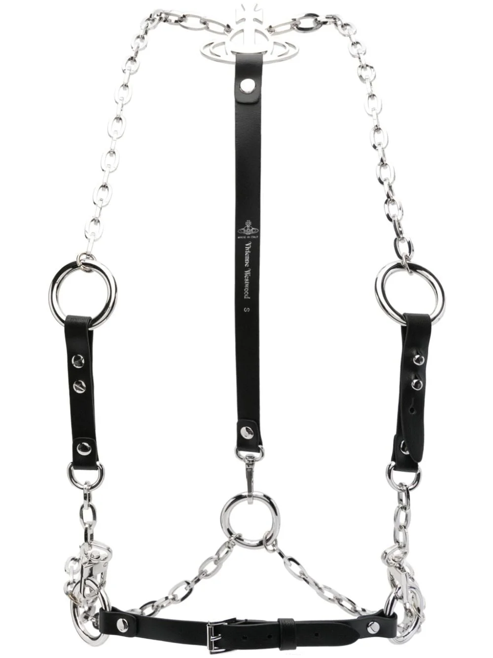 Stud Belt Chain harness Highlights - Black - Calf leather - Cable-link chain - Signature orb plaque detail - Stud detailing - Silver-tone hardware - Buckle fastening Made in Italy Composition Calf Leather 100%, Metal 100% SIZE & FIT Measurement Maximum Length 30.31 in(77 cm) Minimum Length 27.95 in(71 cm)