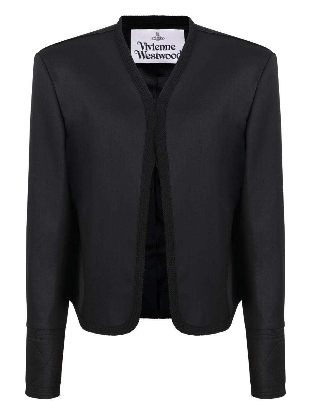 virgin wool cropped jacket Highlights - Black - Virgin wool - Open front - Cropped - Long sleeves Made in Italy Composition Virgin Wool 100% Washing instructions Read Manufacturer Guidelines