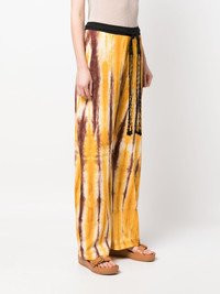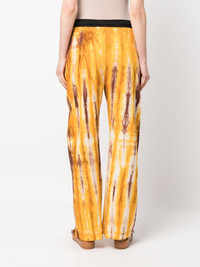 Air Jersey hand-dyed trousers This iteration of Wales Bonner's 'Air Jersey' trouser is delivered in a distinctive orange and brown hand-dyed pattern meaning every pair is unique, similar to a painter's signature. Details include a unique crochet drawstring and a small embroidered logo to the front. Highlights - Orange/multicolour - Cotton - Hand dyed - Painted pattern - Elasticated waistband - High-waisted - Crochet detailing - Embroidered logo - Wide leg - This piece is handmade, meaning your purchase is unique and may vary slightly from the item pictured. Imported Composition Cotton 100%, Acetate 100% SIZE & FIT Model measurements Height 5 ft 10 in(1.78 m) Bust/Chest 31.49 in(80 cm) Hips 36.22 in(92 cm) Waist 25.59 in(65 cm) FittingInformation Designed for a straight-leg fit, these trousers allow for a close fit at the waist and an unrestricted, comfortable fit over the leg Adjust this piece’s waistband to your preference using the drawstring Made from a midweight non-stretch fabric, this piece offers minimal elasticity when worn This piece fits true to size – take your usual size Washing instructions Machine Wash