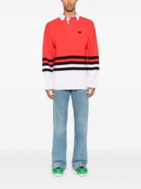 Cypher polo sweater Highlights - Bright red - Wool - Knitted construction - Front button placket - Polo collar - Long sleeves - Embroidered logo at the chest - Horizontal stripe pattern - Ribbed cuffs and hem - When buying this unisex item, keep in mind that it is graded in standard men's sizing. Imported Composition Wool 100%, Cotton 80%, Polyester 20% SIZE & FIT Model measurements Height 5 ft 11 in(1.8 m) Bust/Chest 32.67 in(83 cm) Hips 35.03 in(89 cm) Waist 25.19 in(64 cm) FittingInformation This piece is unisex – if you usually select men's sizing expect a loose fit throughout; if you usually select women's sizes, expect an oversized fit Made with a midweight knit, this piece offers some stretch
