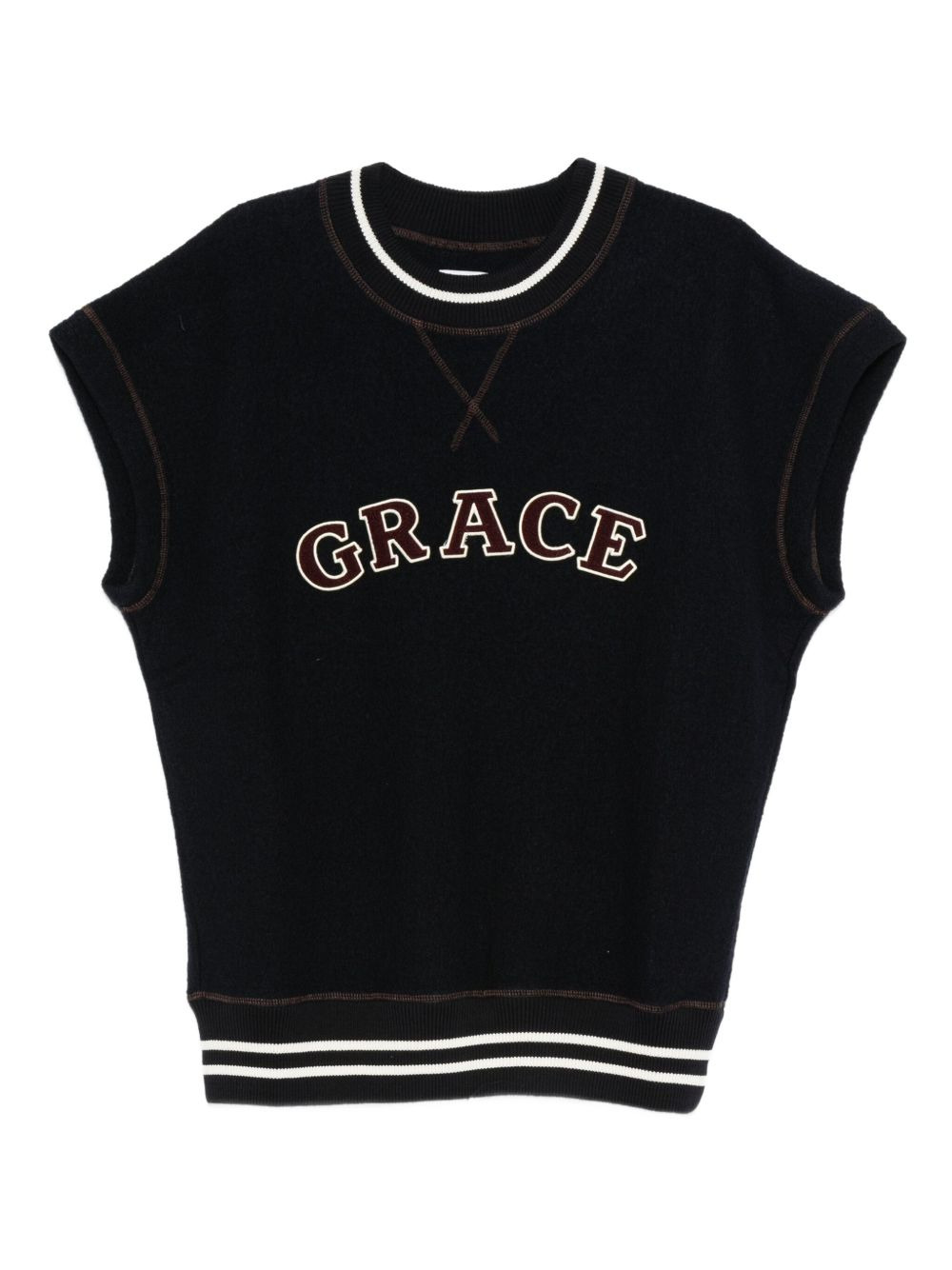 embroidered striped polo shirt Highlights - Black - Embroidered lettering - Sleeveless - Crew neck - Striped trim - Ribbed hem Imported Composition Wool 100% SIZE & FIT Model measurements Height 6 ft 2 in(1.87 m) Bust/Chest 36.41 in(92.5 cm) Hips 37 in(94 cm) Waist 29.52 in(75 cm) Washing instructions Read Manufacturer Guidelines