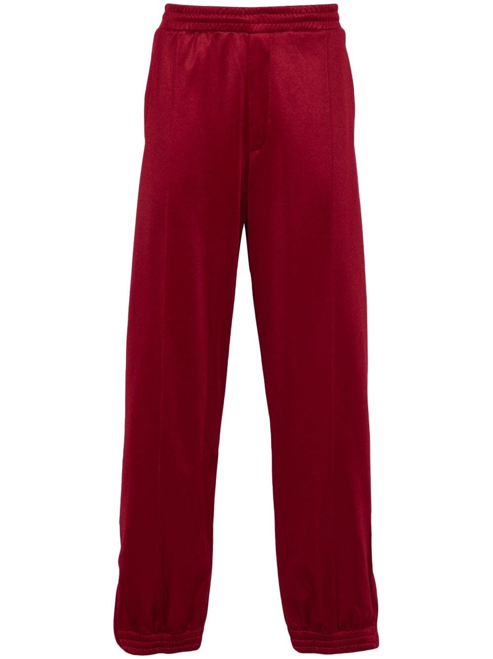 Essence track pants Highlights - Dark red - Technical jersey - Elasticated waistband with internal drawstring - Piped-trim detailing - Raised seam detail - Two side welt pockets - Embroidered logo to the rear - Rear welt pocket - Elasticated ankles - Ankle zips - Tapered leg Imported Composition Lining: Polyester 100% Outer: Cotton 100%, Polyester 55% SIZE & FIT Model measurements Height 6 ft 1 in(1.85 m) Bust/Chest 35.82 in(91 cm) Hips 37.79 in(96 cm) Waist 29.13 in(74 cm) FittingInformation Designed with a wide leg, offering a loose and roomy fit Adjust this piece’s waistband to your preference using the drawstring Made from a midweight non-stretch fabric, this piece offers minimal elasticity when worn
