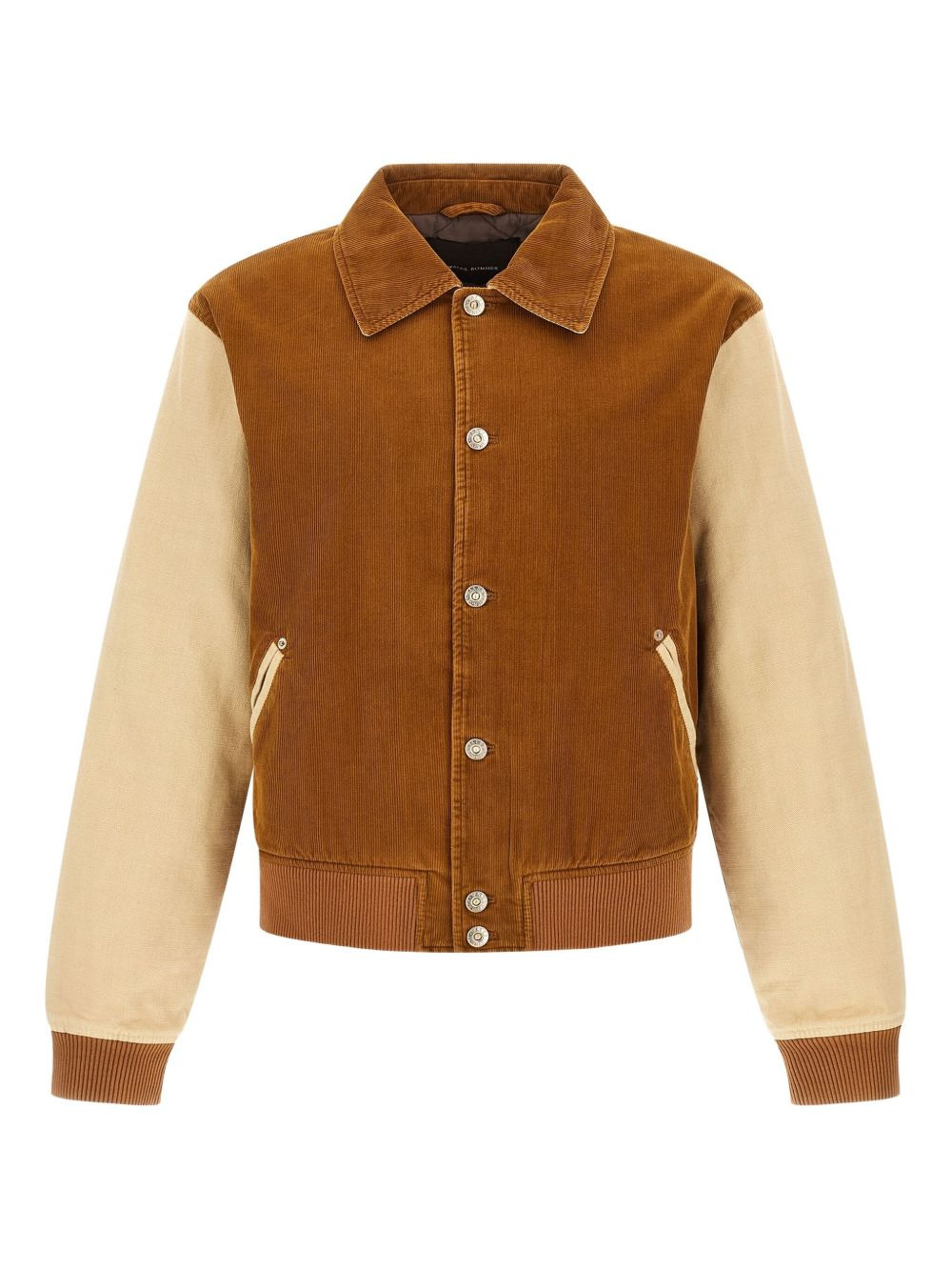 Homecoming corduroy baseball jacket Highlights - Brown - Corduroy texture - Baseball sleeves - Front button closure - Shirt collar - Side welt pockets Imported Composition Cotton 100% Washing instructions Read Manufacturer Guidelines