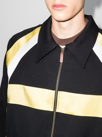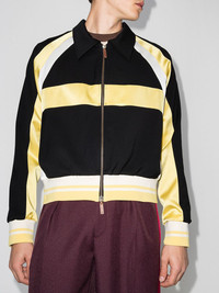 Isaacs panelled bomber jacket Turn it up a gear. Lemon yellow colour-block details add a racing aesthetic to Wales Bonner's bomber jacket. Straight to the finish line. Imported Composition Lining: Cupro 100% Outer: Wool 100% SIZE & FIT Model measurements Height 6 ft 2 in(1.87 m) Bust/Chest 36.41 in(92.5 cm) Hips 35.43 in(90 cm) Waist 29.52 in(75 cm) FittingInformation This piece fits true to size. We recommend you get your regular size Cut for a loose fit Made with a mid-weight non-stretch fabric Washing instructions Dry Clean Only