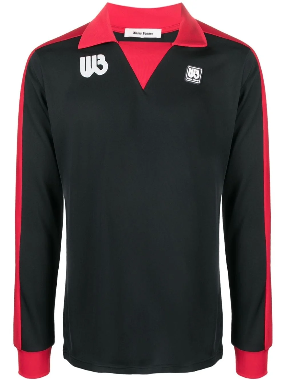 logo-print long-sleeve jersey Effortlessly tying in with current branding trends, this long-sleeve jersey from Wales Bonner features a minimalist silhouette and logo print at the chest. Highlights - Black/red - Logo print at the chest - Spread collar - Long sleeves Imported Composition Polyester 100% SIZE & FIT Model measurements Height 6 ft 1 in(1.86 m) Bust/Chest 37.4 in(95 cm) Hips 36.22 in(92 cm) Waist 29.52 in(75 cm) Measurement SLEEVE LENGTH 26.37 in(67 cm) LENGTH 28.34 in(72 cm) FittingInformation Designed for a relaxed fit, this piece allows for comfort and movement when worn Made from a midweight non-stretch fabric, this piece offers minimal elasticity when worn This piece fits true to size – take your usual size Washing instructions Machine Wash