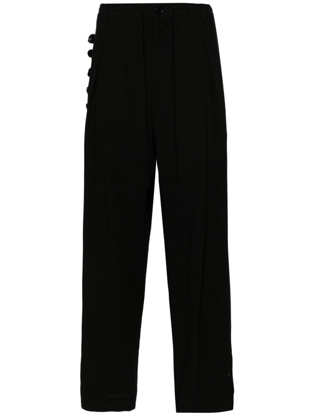 Menelik drop-crotch trousers Highlights - Black - Crepe texture - Elasticated drawstring waistband - Pompom detail - Pleat detailing - Drop crotch - Two rear welt pockets - Embroidered logo to the rear - Concealed fly and button fastening Imported Composition Viscose 70%, Linen/Flax 30% SIZE & FIT Model measurements Height 6 ft 2 in(1.87 m) Bust/Chest 33.46 in(85 cm) Hips 36.22 in(92 cm) Waist 29.52 in(75 cm) FittingInformation Designed for a straight-leg, allowing for an unrestricted and comfortable fit over the leg Made from a midweight non-stretch fabric This piece fits true to size – take your usual size