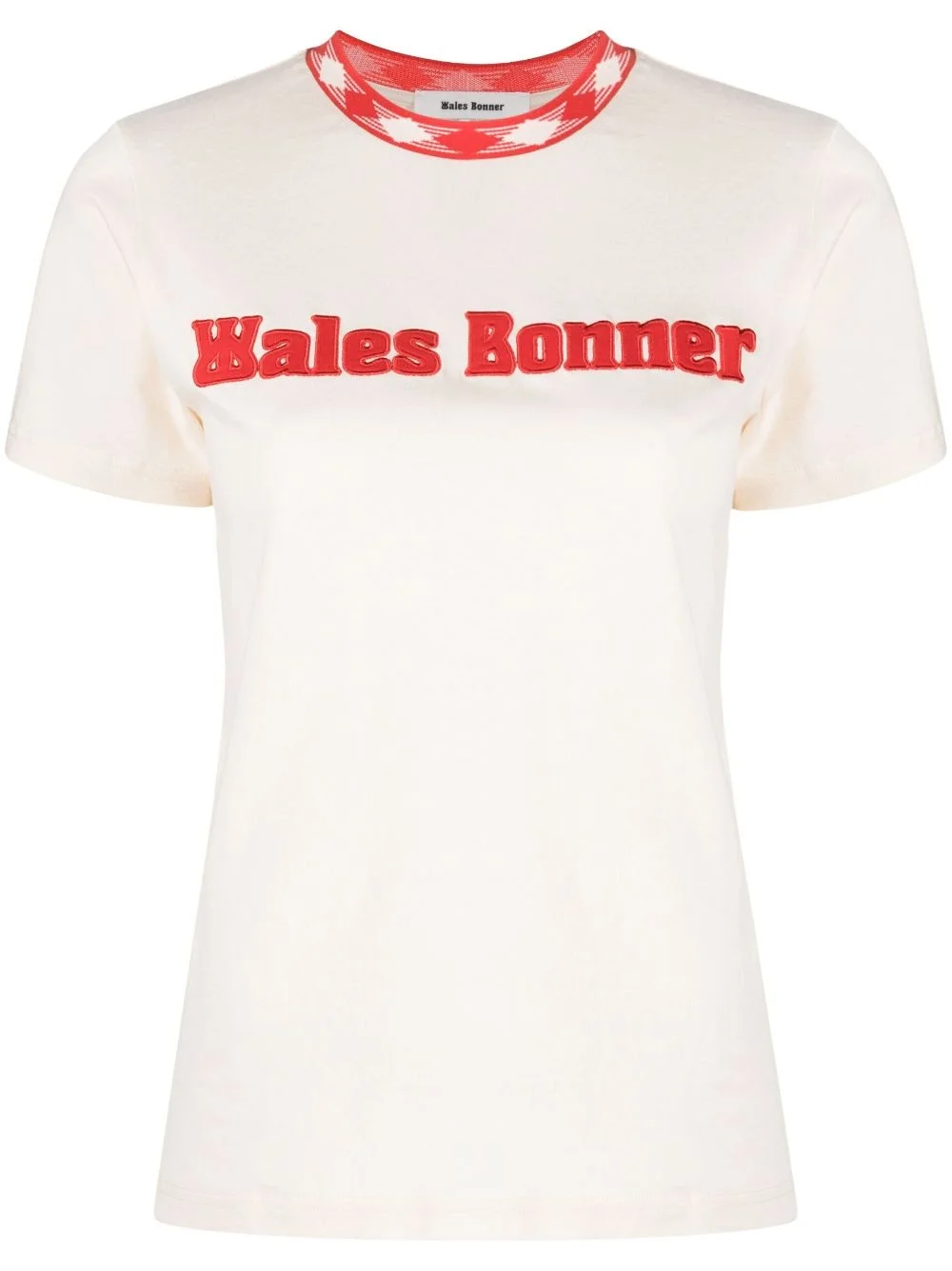 Original logo-applique T-shirt Wales Bonner's nostalgic mood is captured with this organic cotton T-shirt. It’s adorned with a contrasting logo applique and a graphic at the back that recalls Sorbonne University's First Congress of Black Artists and Writers in 1956. Highlights - Ivory white/red - Organic cotton - Applique logo - Graphic print to the rear - Crew neck - Short sleeves - Straight hem Imported Composition Organic Cotton 100%, Polyester 95%, Spandex/Elastane 5% SIZE & FIT Model measurements Height 5 ft 10 in(1.78 m) Bust/Chest 31.49 in(80 cm) Hips 35.03 in(89 cm) Waist 23.62 in(60 cm) Measurement SLEEVE LENGTH 7.87 in(20 cm) LENGTH 23.62 in(60 cm) BUST 37.79 in(96 cm) Shoulder Width 15.74 in(40 cm) FittingInformation Designed for a slim fit that sits just away from the body offering a close yet comfortable fit Made from a midweight non-stretch fabric, this piece offers minimal elasticity when worn This piece fits true to size – take your usual size Washing instructions Machine Wash