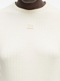 ribbed logo-patch top Highlights - Off-white - Short sleeves - Ribbed texture - Round neck - Logo patch Imported Composition Viscose 95%, Elastane 5% Washing instructions Read Manufacturer Guidelines