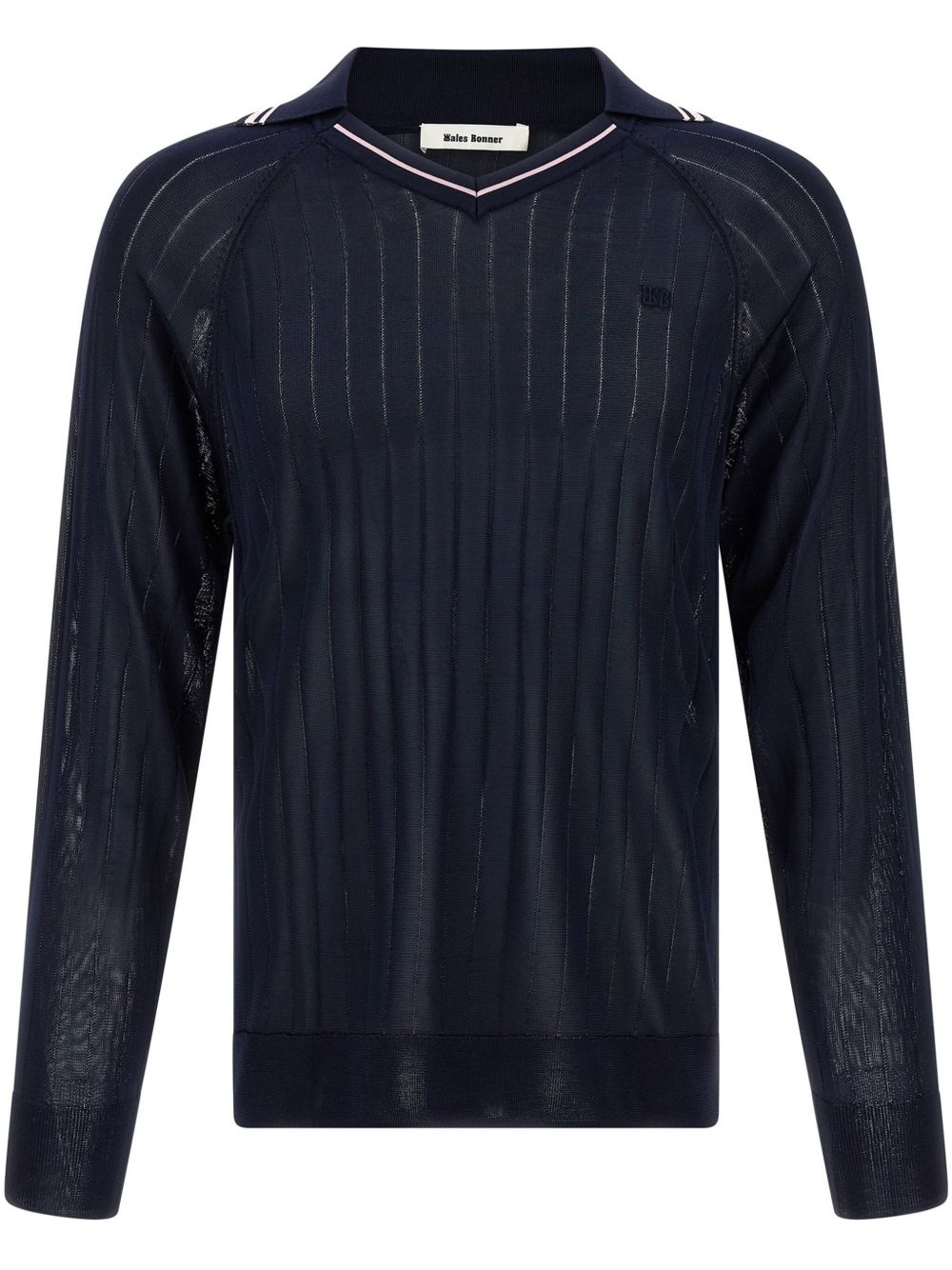 Roots sweater Highlights - Navy blue - Polo collar - V-neck - Embroidered logo at the chest - Wide ribbed Imported Composition Viscose 100%