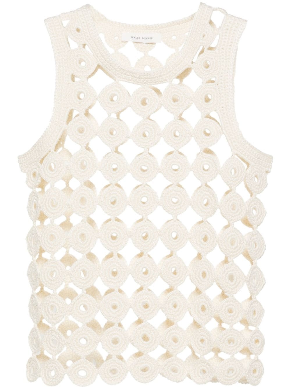 Stanza cotton vest Highlights - Ivory white - Cotton - Crochet knit - Round neck - Sleeveless - Scallop hem Imported Composition Cotton 100% SIZE & FIT Model measurements Height 5 ft 9 in(1.75 m) Bust/Chest 31.1 in(79 cm) Hips 36.22 in(92 cm) Waist 25.19 in(64 cm) FittingInformation Designed for a slim fit that sits just away from the body offering a close yet comfortable fit Made with a midweight knit, this piece offers some stretch This piece fits true to size – take your usual size