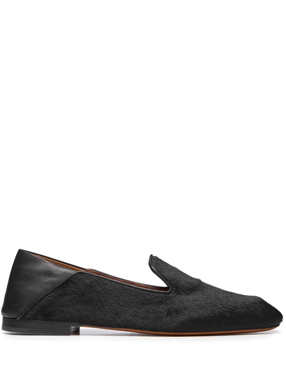 Symphony leather flat slippers Highlights - Brown - Calf leather - Square toe - Leather trim - Leather lining - Branded leather insole - Flat leather sole - Slip-on style Imported Composition Sole: Calf Leather 100% Lining: Calf Leather 100% Outer: CALFSKIN 100%