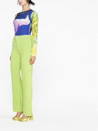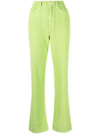 Rose ribbed straight-leg trousers Defined by their bright green hue, Wandler's Rose trousers are made in Italy from cotton and worked into a ribbed finish for added texture. Sitting high at the waist, they fall into a versatile yet classic straight leg. Highlights - Bright green - Cotton - Fine ribbed - High-waisted - Front button and zip fastening - Belt loops - Classic five pockets Made in Italy Composition Cotton 100% SIZE & FIT Model measurements Height 5 ft 10 in(1.77 m) Bust/Chest 31.49 in(80 cm) Hips 35.03 in(89 cm) Waist 23.22 in(59 cm) Measurement FRONT RISE 11.81 in(30 cm) HIPS 34.64 in(88 cm) WAIST 27.55 in(70 cm) FittingInformation This piece fits true to size. We recommend you get your regular size Designed to be fitted at the waist and hips, loose over the leg Made with a mid-weight non-stretch fabric Washing instructions Machine Wash