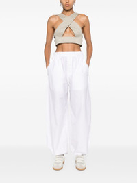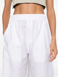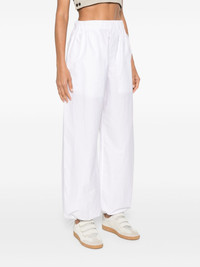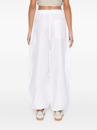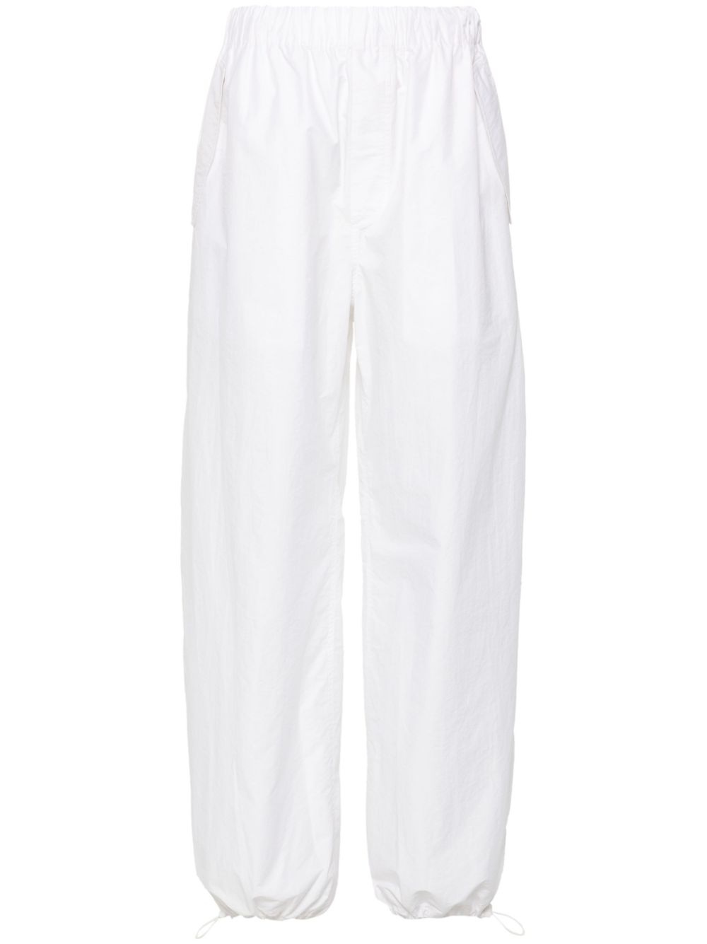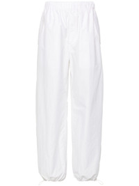 Beach track pants Highlights - White - Cotton blend - Elasticated waistband with internal drawstring - Straight leg - Two side flap pockets - Rear patch pocket - Drawstring cuffs Imported Composition Cotton 78%, Polyamide 22% SIZE & FIT Model measurements Height 5 ft 10 in(1.78 m) Bust/Chest 33.07 in(84 cm) Hips 36.61 in(93 cm) Waist 24.8 in(63 cm) FittingInformation Designed with a wide-leg cut, these trousers allow for a close fit at the waist and offer a loose and roomy fit over the leg Adjust this piece’s waistband to your preference using the drawstring Made from a midweight non-stretch fabric This piece fits true to size – take your usual size