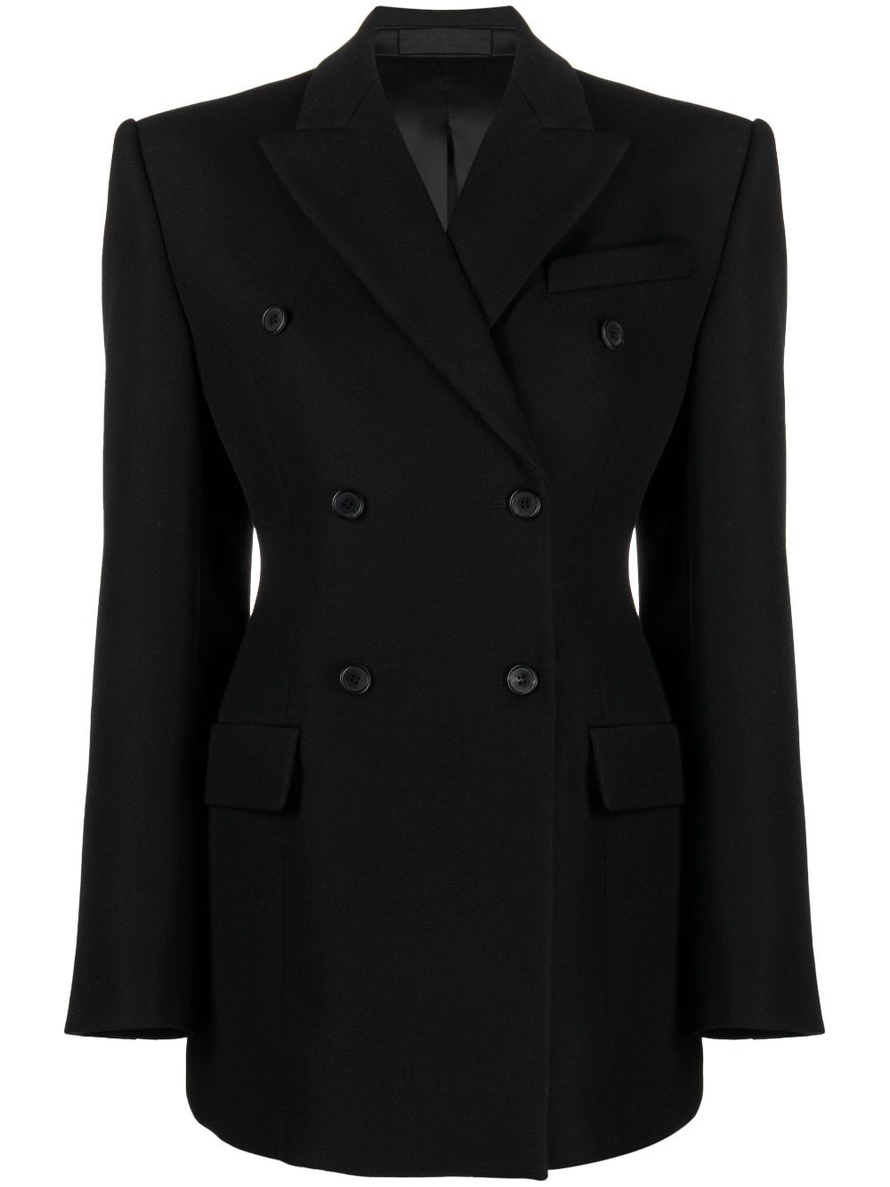 Contour double-breasted blazer Named after its sculptural hourglass silhouette, WARDROBE.NYC's double-breasted Contour blazer is tailored from mid-weight wool. Highlights - Black - Wool - Peak lapels - Double-breasted button fastening - Long sleeves - Chest welt pocket - Two front flap pockets Imported Composition Lining: Viscose 100% Outer: Wool 100% SIZE & FIT Model measurements Height 5 ft 10 in(1.78 m) Bust/Chest 31.49 in(80 cm) Hips 35.03 in(89 cm) Waist 23.62 in(60 cm) Measurement SLEEVE LENGTH 24.4 in(62 cm) LENGTH 29.52 in(75 cm) WAIST 41.73 in(106 cm) BUST 32.28 in(82 cm) Shoulder Width 16.92 in(43 cm) FittingInformation Designed for a slim fit that sits just away from the body offering a close yet comfortable fit The internal shoulder pads offer a structured shape Made from a midweight non-stretch fabric This piece fits true to size – take your usual size Washing instructions Dry Clean Only