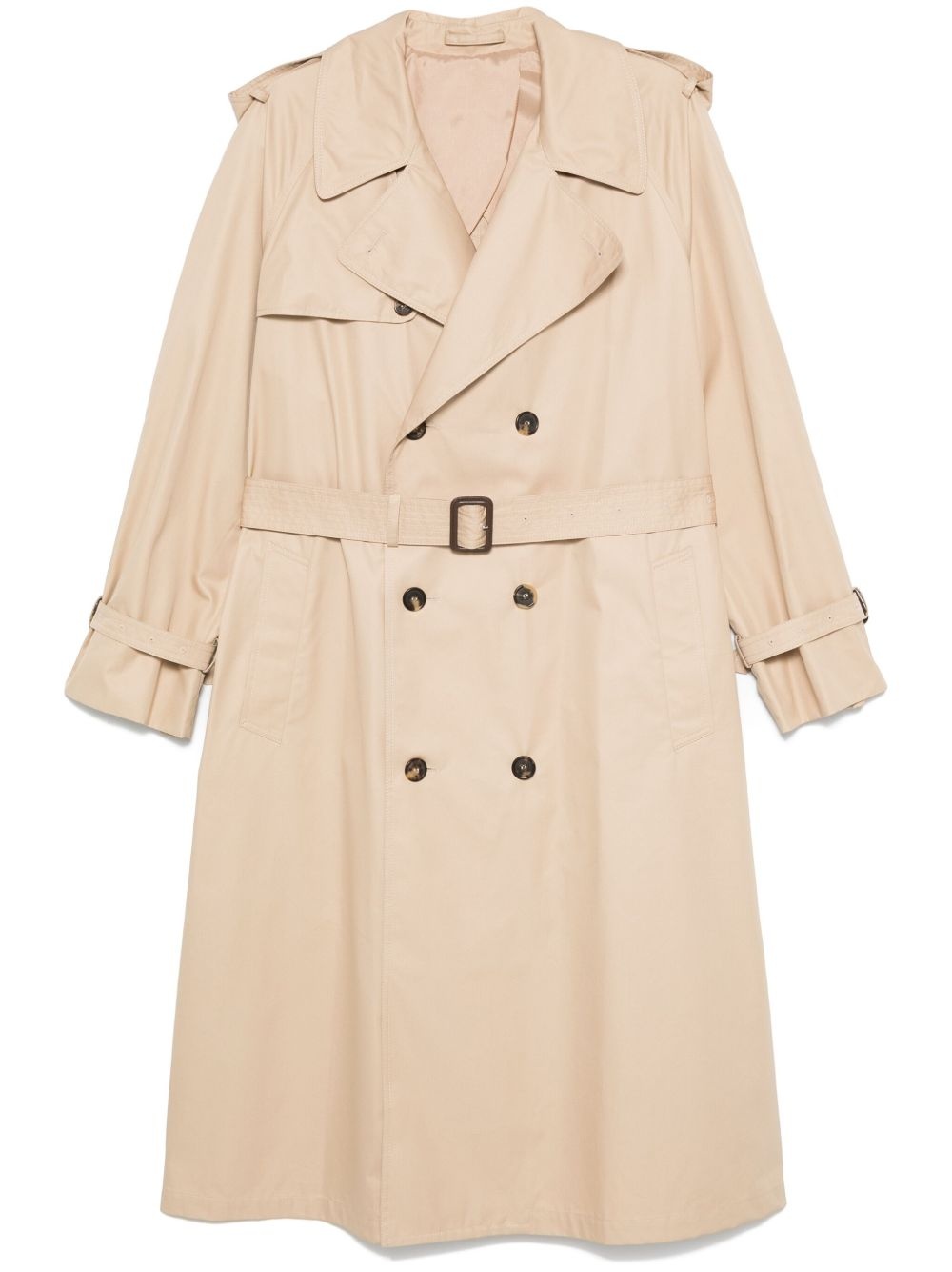 cotton trench coat Highlights - Sand beige - Cotton - Double-breasted button fastening - Notched lapels - Epaulettes - Long sleeves - Belted cuffs - Two side welt pockets - Storm flap - Central rear vent - Partial lining - Straight hem Imported Composition Lining: Cotton 100% Outer: Cotton 100% SIZE & FIT Measurement BUST 52.75 in(134 cm) LENGTH 47.63 in(121 cm) WAIST 55.11 in(140 cm)