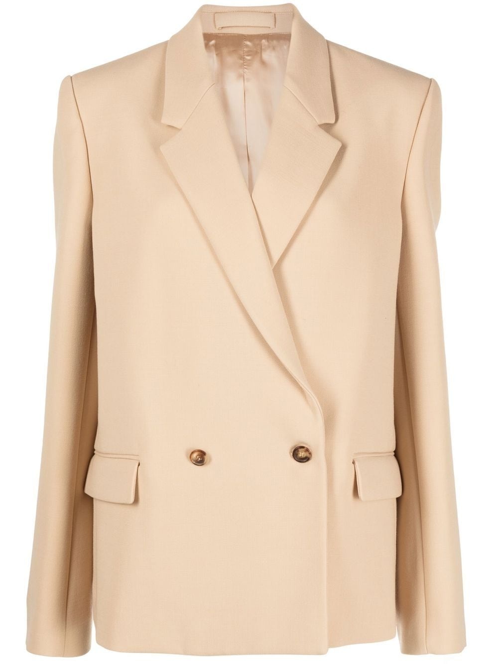double-breasted blazer light beige virgin wool notched lapels double-breasted button fastening long sleeves two side flap pockets central rear vent straight hem Imported Composition Outer: Virgin Wool 100% Lining: Viscose 100% SIZE & FIT Model measurements Height 5 ft 10 in(1.79 m) Bust/Chest 31.49 in(80 cm) Hips 35.03 in(89 cm) Waist 23.62 in(60 cm) Measurement SLEEVE LENGTH 27.55 in(70 cm) LENGTH 28.34 in(72 cm) WAIST 43.3 in(110 cm) BUST 43.3 in(110 cm) Shoulder Width 17.71 in(45 cm) FittingInformation This piece fits true to size. We recommend you get your regular size Cut for a loose fit Made with a mid-weight non-stretch fabric Washing instructions Machine Wash