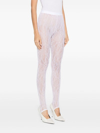 embroidered-lace trousers Highlights - White - Elasticated waistband - High-rise - Semi-sheer construction Imported Composition Polyamide 85%, Elastane 15% SIZE & FIT Model measurements Height 5 ft 10 in(1.79 m) Bust/Chest 33.07 in(84 cm) Hips 35.82 in(91 cm) Waist 24.01 in(61 cm) FittingInformation Designed for skinny fit cut offering a close fit and minimal movement Made from a lightweight stretch fabric, this piece offers elasticity and flexibility when worn