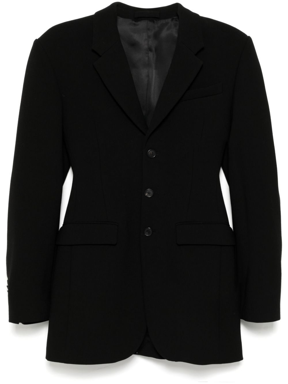 longline blazer Highlights - Black - Virgin wool - Notched lapels - Front button fastening - Shoulder pads - Long sleeves with buttoned cuffs - Chest welt pocket - Two front flap pockets - American rear vent - Curved hem - Thigh-length - Satin lining Imported Composition Lining: Viscose 100% Outer: Virgin Wool 100% SIZE & FIT Measurement SLEEVE LENGTH 25.19 in(64 cm) BUST 33.85 in(86 cm) Shoulder Width 17.71 in(45 cm) FittingInformation Designed for a slim fit that sits just away from the body offering a close yet comfortable fit The internal shoulder pads offer a structured shape Made from a midweight non-stretch fabric Washing instructions Dry Clean Only