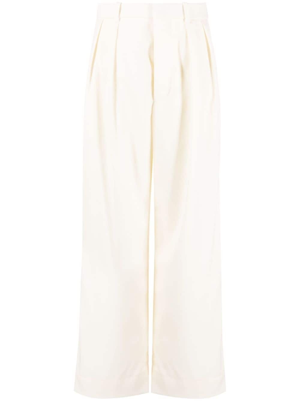 low-rise trousers These trousers from WARDROBE.NYC. are designed to sit at the hip and boast a wide-leg silhouette. Crafted from virgin wool, this design is enhanced by refined pleat detailing. Highlights - Off-white - Virgin wool - Pleat detailing - Low-rise - Wide leg Imported Composition Outer: Virgin Wool 100% Lining: Viscose 100% SIZE & FIT Model measurements Height 5 ft 10 in(1.79 m) Bust/Chest 31.1 in(79 cm) Hips 35.03 in(89 cm) Waist 24.01 in(61 cm) FittingInformation Designed with a wide-leg cut, these trousers allow for a close fit at the waist and offer a loose and roomy fit over the leg Made from a midweight non-stretch fabric This piece fits true to size – take your usual size