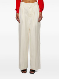 low-rise tuxedo trousers Highlights - White - Concealed front fastening - Two side slash pockets - Pressed crease - Side stripe detailing Imported Composition Outer: Wool 100%, Silk 100% Lining: Cotton 100% SIZE & FIT FittingInformation Designed with a wide-leg cut, these trousers allow for a close fit at the waist and offer a loose and roomy fit over the leg Made from a midweight non-stretch fabric Washing instructions Read Manufacturer Guidelines