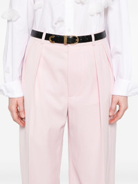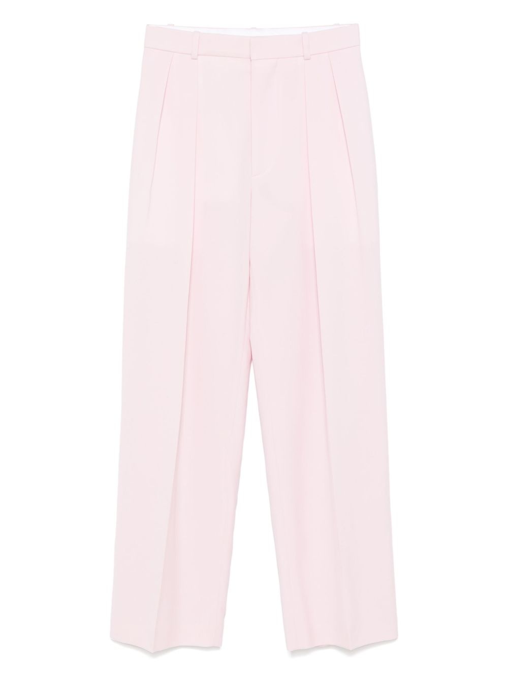 pleated trousers Highlights - Light pink - Hook and zip fly fastening - Two side slit pockets - Two rear welt pockets - Belt loops Imported Composition Outer: Virgin Wool 100% Lining: Cotton 100% SIZE & FIT Model measurements Height 5 ft 9 in(1.75 m) Bust/Chest 34.64 in(88 cm) Hips 36.61 in(93 cm) Waist 26.37 in(67 cm) FittingInformation Designed with a wide-leg cut, these trousers allow for a close fit at the waist and offer a loose and roomy fit over the leg Made from a midweight non-stretch fabric Washing instructions Dry Clean Only