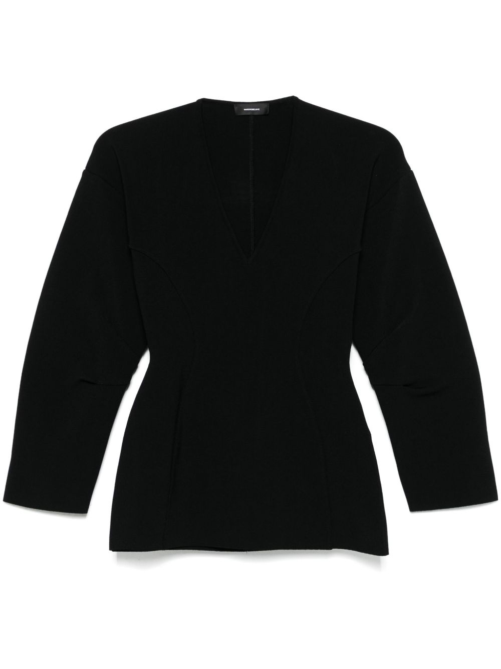 ribbed top Highlights - Black - V-neck - Long sleeves - Seam detailing Made in Italy Composition Viscose 83%, Polyester 17%