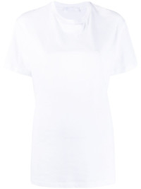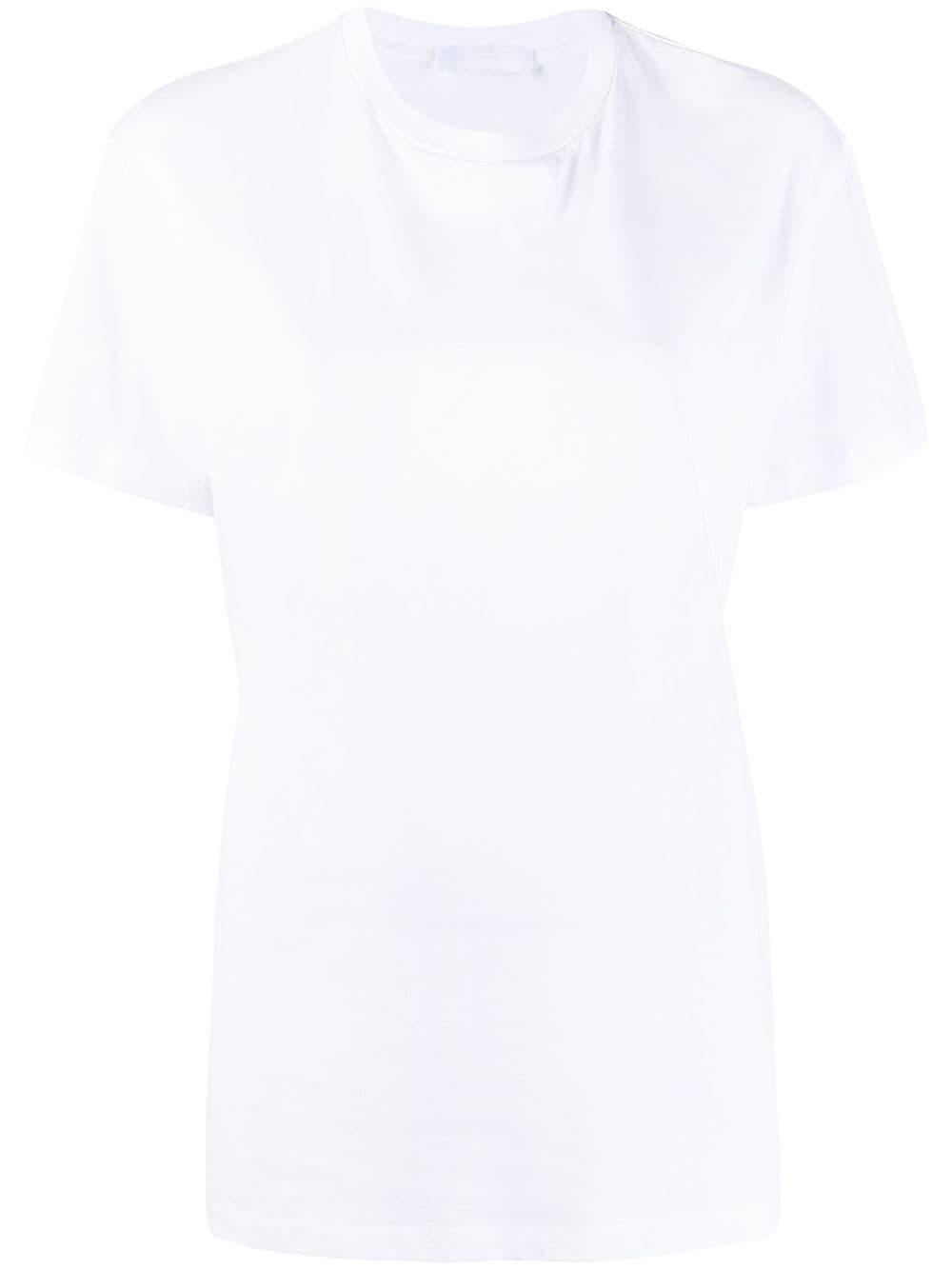 round neck cotton T-shirt white cotton round neck short sleeves straight hem Imported Composition Cotton 100% SIZE & FIT Model measurements Height 5 ft 10 in(1.78 m) Bust/Chest 31.49 in(80 cm) Hips 36.22 in(92 cm) Waist 25.59 in(65 cm) Measurement BUST 40 in(101.6 cm) LENGTH 25.98 in(66 cm) WAIST 37.99 in(96.5 cm) SLEEVE LENGTH 7 in(17.8 cm) FittingInformation Designed to be unstructured, offering a loose fit throughout Made from a midweight non-stretch fabric, this piece offers minimal elasticity when worn This piece fits true to size – take your usual size Washing instructions Hand Wash