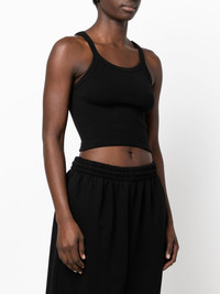 scoop-neck cropped top black stretch-cotton scoop neck sleeveless cropped Imported Composition Cotton 90%, Elastane 10% SIZE & FIT Model measurements Height 5 ft 10 in(1.77 m) Bust/Chest 32.28 in(82 cm) Hips 35.03 in(89 cm) Waist 25.19 in(64 cm) Measurement BUST 20.47 in(52 cm) LENGTH 12.2 in(31 cm) FittingInformation This piece fits true to size. We recommend you get your regular size Cut for a slim fit Made with a mid-weight stretch fabric Washing instructions Machine Wash