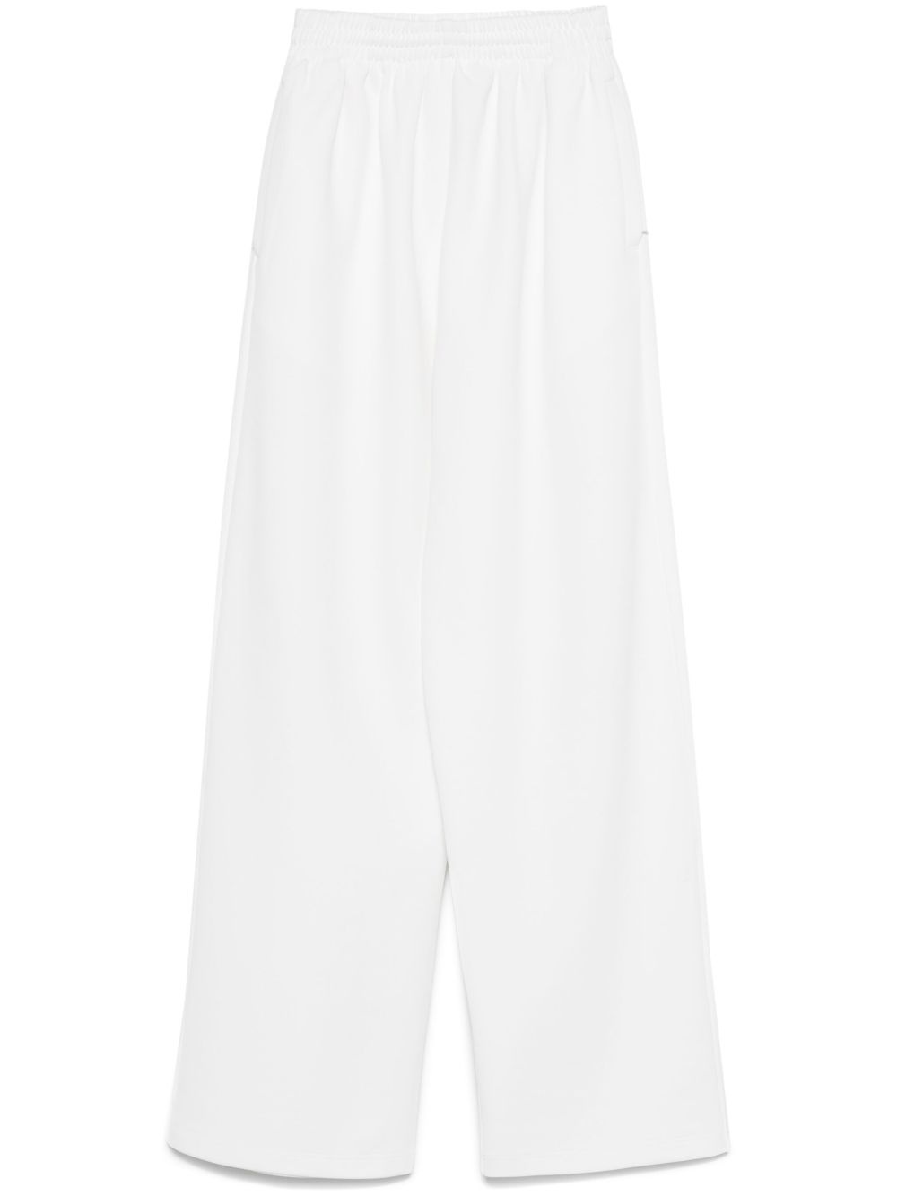Semi Matte track pants Highlights - White - Elasticated waistband with internal drawstring - Two side zip-fastening pockets - Rear zip-fastening pocket Imported Composition Outer: Viscose 60%, Polyamide 30%, Spandex/Elastane 10% Lining: Cotton 100% SIZE & FIT Model measurements Height 5 ft 10 in(1.78 m) Bust/Chest 33.85 in(86 cm) Hips 36.61 in(93 cm) Waist 26.77 in(68 cm) FittingInformation Designed with a wide-leg cut, these trousers allow for a close fit at the waist and offer a loose and roomy fit over the leg Adjust this piece’s waistband to your preference using the drawstring Made from a midweight stretch fabric, this piece offers elasticity and flexibility when worn Washing instructions Dry Clean Only