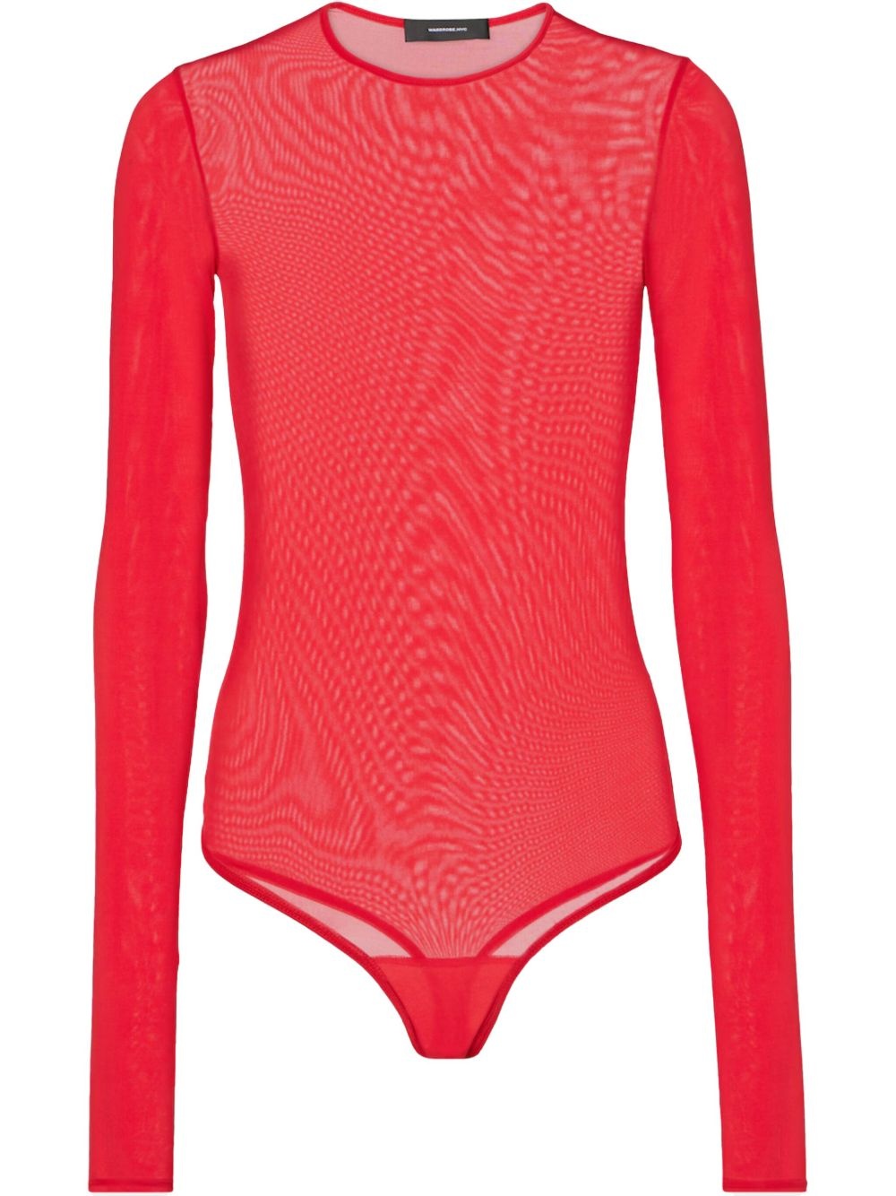sheer bodysuit Highlights - Red - Pull-on style - Crew neck - Long sleeves - Just a reminder that this piece must be tried on over your own garments. Imported Composition Viscose 86%, Elastane 14% Washing instructions Dry Clean Only