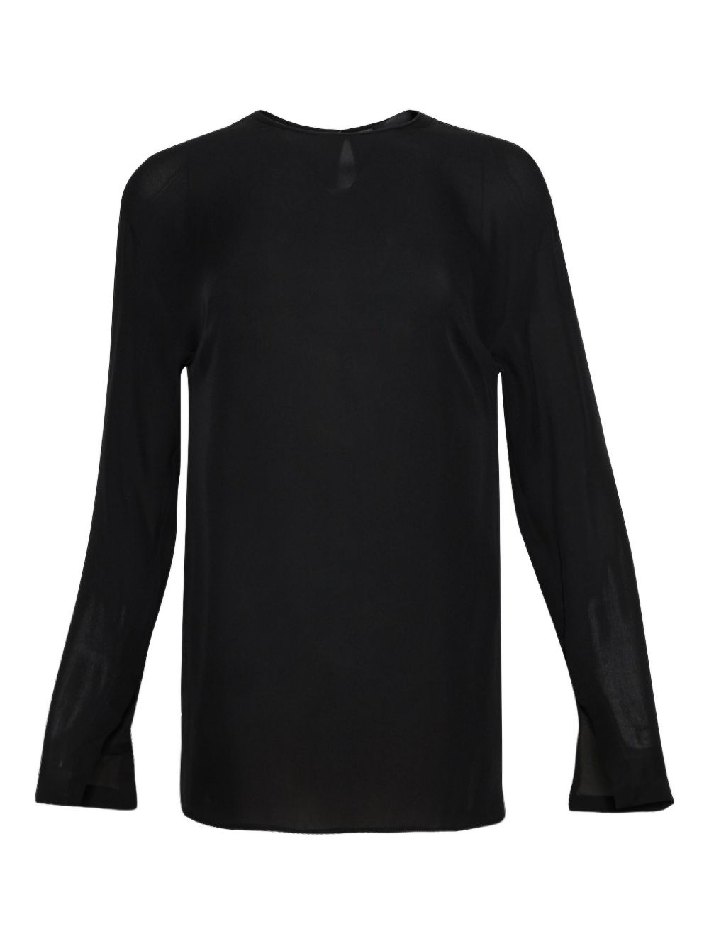 sheer split-cuff blouse Highlights - Black - Long sleeves - Split cuffs - Round neck - Straight hemline Made in Italy Composition Silk 100%, Cotton 72%, Polyamide 24%, Spandex/Elastane 4% Washing instructions Machine Wash