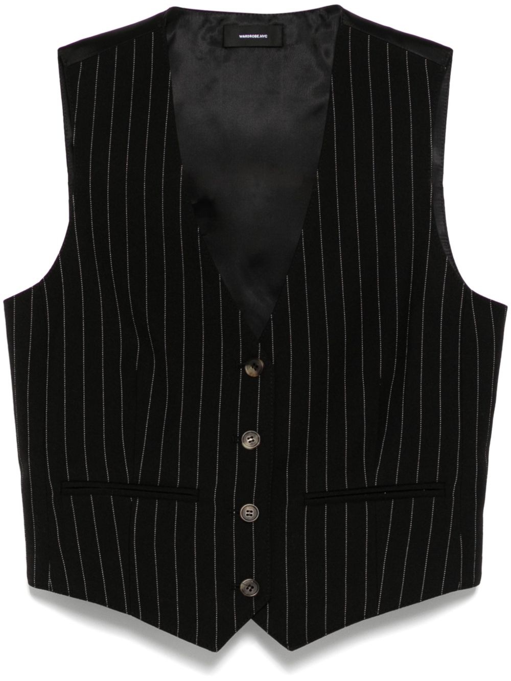 striped waistcoat Highlights - Black - Front button fastening - Two front jetted pockets - Sleeveless - Full lining Imported Composition Lining: Viscose 100% Outer: Virgin Wool 100% Washing instructions Dry Clean Only