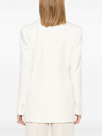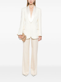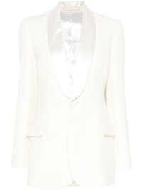 tuxedo blazer Highlights - White - Virgin wool/silk - Textured finish - Front button fastening - Shawl lapels - Shoulder pads - Long sleeves - Buttoned cuffs - Two front flap pockets - Italian rear vents - Internal jetted pocket - Full lining - Curved hem Imported Composition Outer: Virgin Wool 100%, Silk 100% Lining: Viscose 100% SIZE & FIT Model measurements Height 5 ft 9 in(1.75 m) Bust/Chest 31.88 in(81 cm) Hips 34.64 in(88 cm) Waist 24.01 in(61 cm) FittingInformation Designed for a slim fit that sits just away from the body offering a close yet comfortable fit The internal shoulder pads offer a structured shape Made from a midweight non-stretch fabric Washing instructions Dry Clean Only