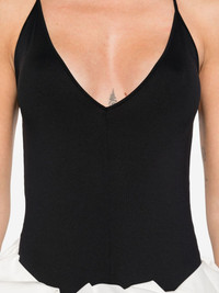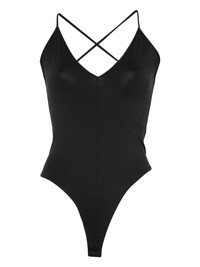 v-neck bodysuit Highlights - Black - V-neck - Spaghetti straps - Just a reminder that this piece must be tried on over your own garments. Imported Composition Polyamide 74%, Elastane 26% SIZE & FIT Model measurements Height 5 ft 10 in(1.78 m) Bust/Chest 33.46 in(85 cm) Hips 36.22 in(92 cm) Waist 23.22 in(59 cm) Washing instructions Hand Wash