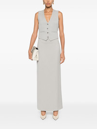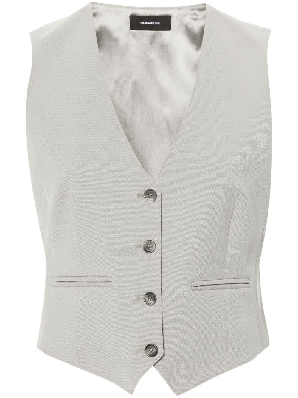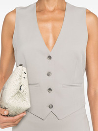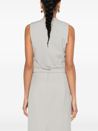 virgin wool waistcoat Highlights - Light grey - Virgin wool - Interlock weave - V-neck - Front button fastening - Adjustable strap to the rear - Sleeveless - Two front jetted pockets - Satin lining Imported Composition Outer: Virgin Wool 100% Lining: Viscose 100% SIZE & FIT Model measurements Height 5 ft 10 in(1.78 m) Bust/Chest 33.07 in(84 cm) Hips 36.61 in(93 cm) Waist 24.8 in(63 cm) Measurement CHEST 31.49 in(80 cm) LENGTH 20.47 in(52 cm) WAIST 28.34 in(72 cm) FittingInformation Designed for a slim fit that sits just away from the body offering a close yet comfortable fit The adjustable tabs allow for fitted preferences Made from a midweight non-stretch fabric This piece fits true to size – take your usual size