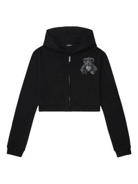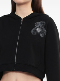 bear-print zip-up hoodie Highlights - Black - Hooded neckline - Zip fastening - Cropped length - Bear graphic front - Bear graphic back Imported Composition Cotton 100% Washing instructions Read Manufacturer Guidelines
