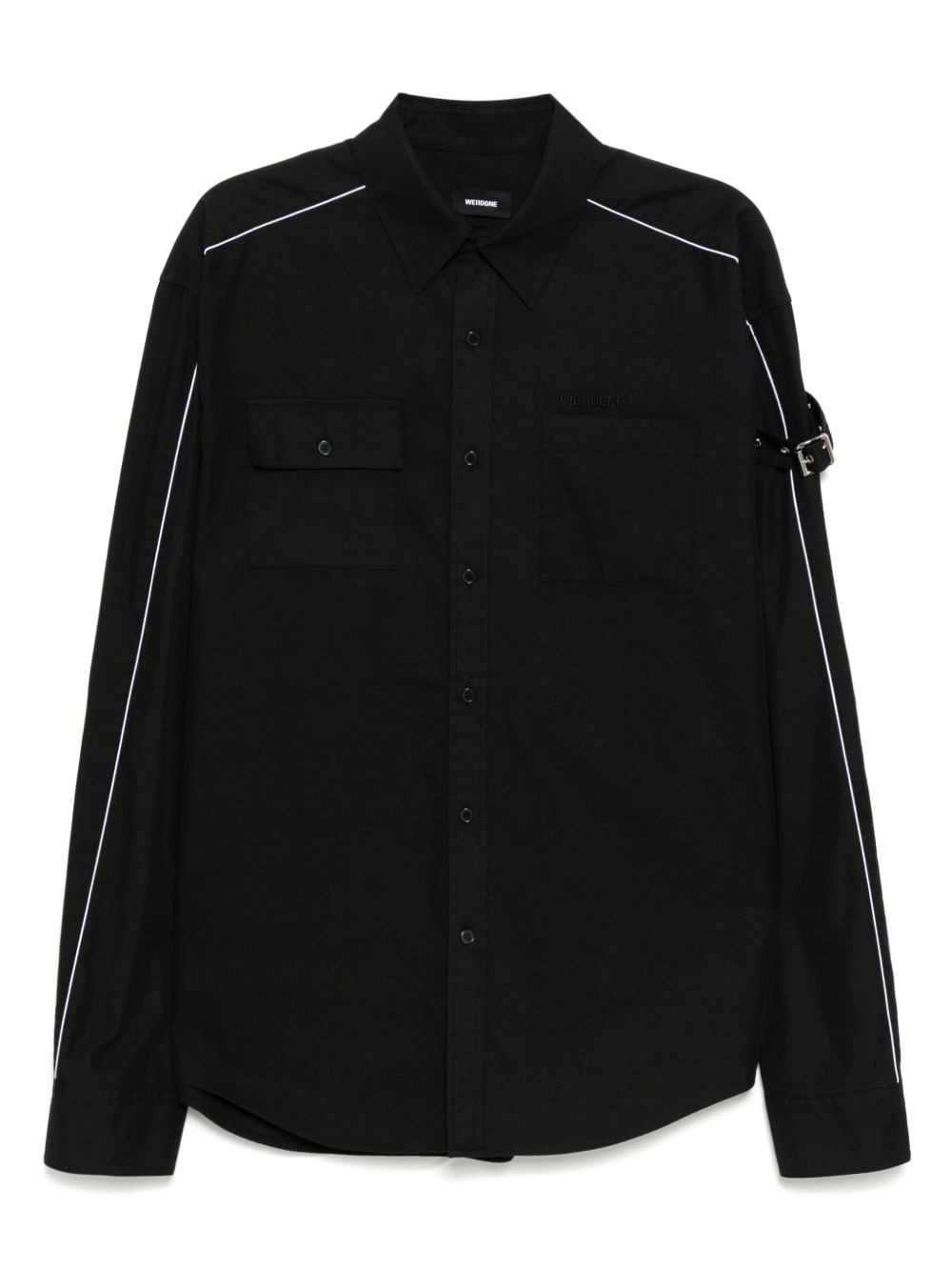 belted shirt Highlights - Black - Front button fastening - Buttoned-cuff sleeves - Chest patch pocket - Chest flap pocket Imported Composition Cotton 75%, Nylon 25% SIZE & FIT Model measurements Height 6 ft 2 in(1.87 m) Bust/Chest 33.07 in(84 cm) Hips 35.43 in(90 cm) Waist 26.77 in(68 cm) FittingInformation Designed to be unstructured, offering a loose fit throughout Made from a midweight non-stretch fabric