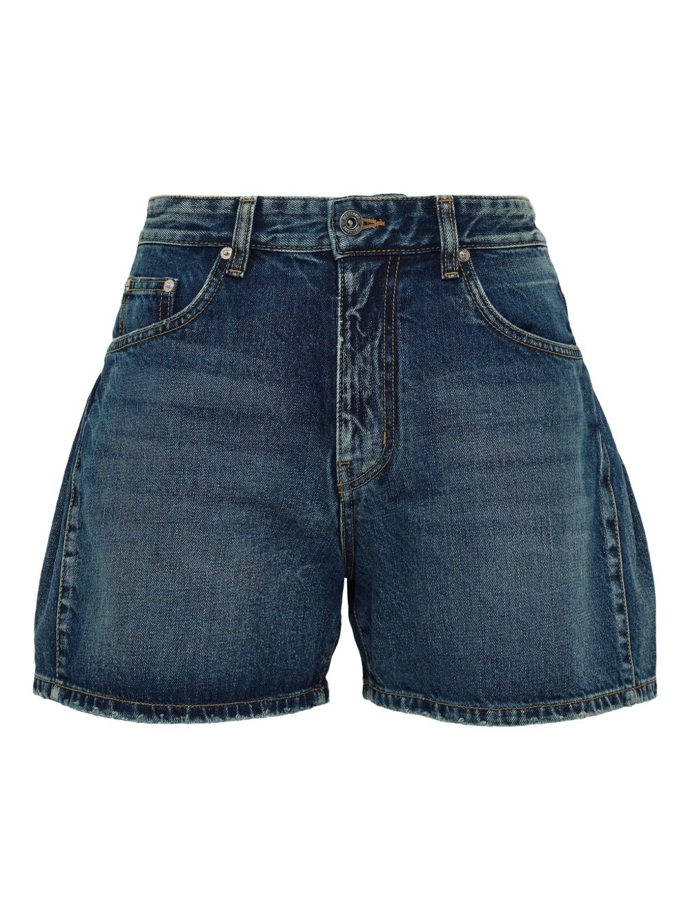 cotton denim shorts Highlights - Navy blue - Pleated detail - Button fly - Classic five pockets Imported Composition Cotton 100% Washing instructions Read Manufacturer Guidelines