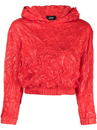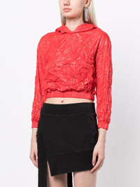crinkle-effect cropped hoodie Highlights - Bright red - Crinkled finish - Three-quarter length sleeves - Elasticated cuffs and hem - Classic hood - Cropped Imported Composition Body: Polyester 100% SIZE & FIT Model measurements Height 5 ft 10 in(1.77 m) Bust/Chest 31.88 in(81 cm) Hips 33.85 in(86 cm) Waist 24.01 in(61 cm) FittingInformation Designed for a slim fit that sits just away from the body offering a close yet comfortable fit The elasticated waist allows for a comfortable fit Made from a lightweight non-stretch fabric This piece fits true to size – take your usual size Washing instructions Dry Clean Only