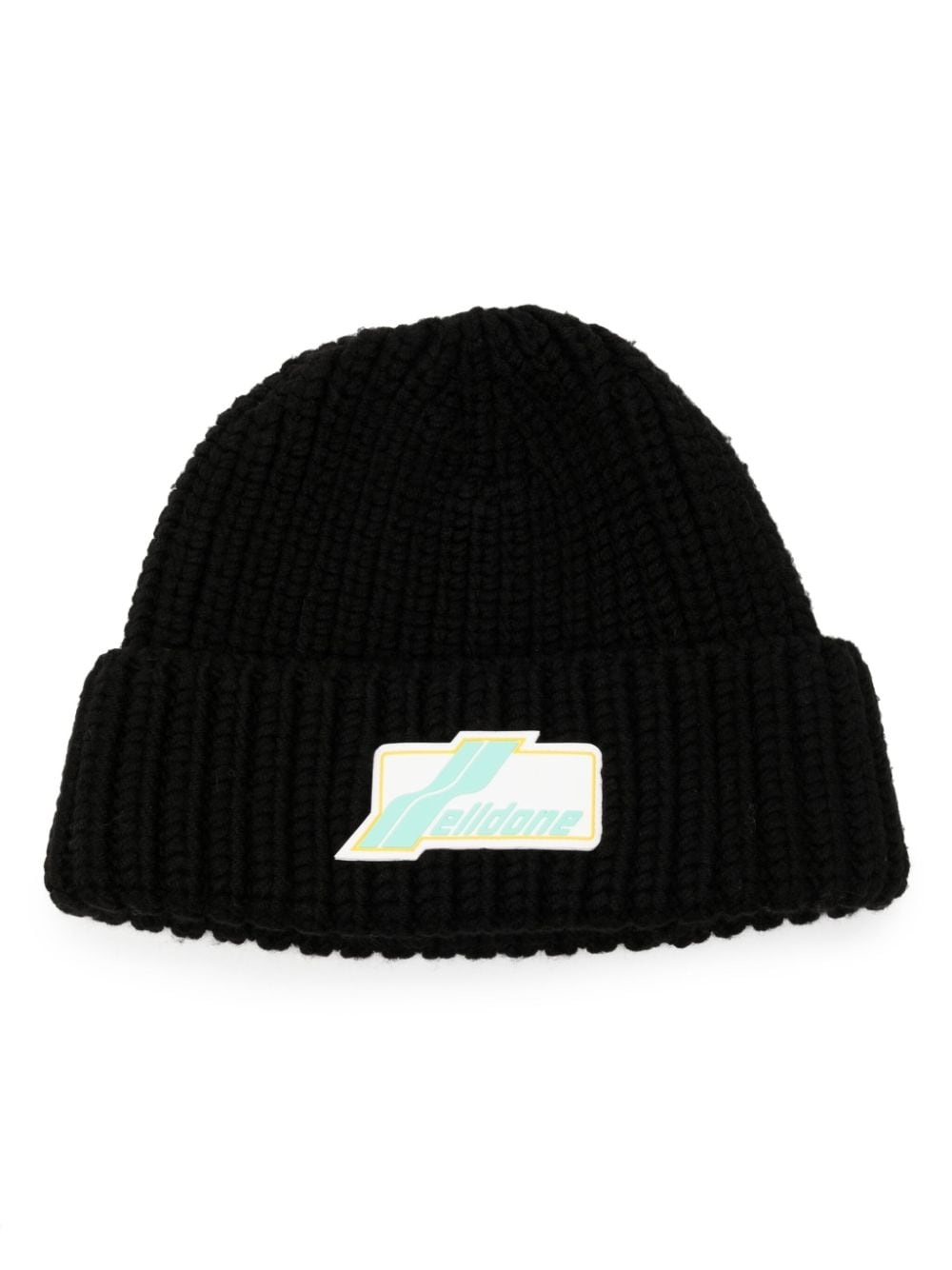 logo-applique wool beanie Highlights - Black - Wool - Chunky ribbed knit - Applique logo - Turn-up brim - Round crown - Pull-on style Imported Composition Wool 100%