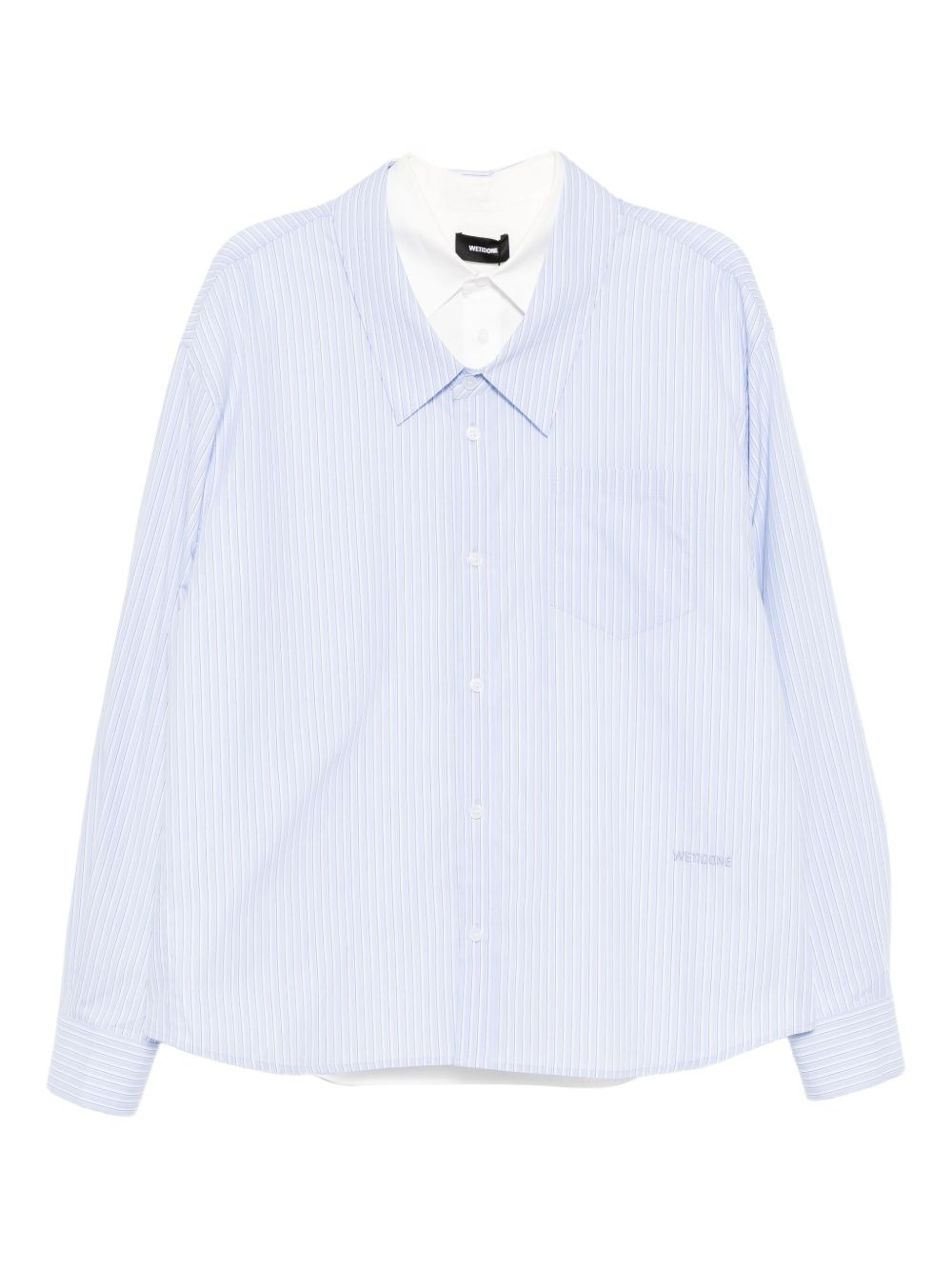 logo-embroidered shirt Highlights - Light blue - Front button fastening - Chest welt pocket Imported Composition Cotton 100% SIZE & FIT Model measurements Height 6 ft 3 in(1.9 m) Bust/Chest 19.29 in(49 cm) Hips 38.58 in(98 cm) Waist 32.28 in(82 cm) FittingInformation Designed for a boxy fit, intended for a loose fit throughout Made from a midweight non-stretch fabric Washing instructions Dry Clean Only