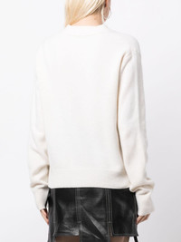 logo-intarsia wool cardigan Highlights - Off-white - Wool - Intarsia-knit logo - Knitted construction - V-neck - Long sleeves - Front button fastening - Ribbed cuffs and hem - Straight hem - Front patch pocket Imported Composition Wool 80% SIZE & FIT Model measurements Height 5 ft 9 in(1.76 m) Bust/Chest 31.1 in(79 cm) Hips 35.03 in(89 cm) Waist 24.4 in(62 cm) FittingInformation Designed to be unstructured, offering a loose fit throughout Constructed with additional length on the sleeve Made with a midweight knit, this piece offers some stretch This piece fits true to size – take your usual size Washing instructions Hand Wash