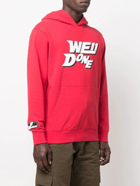 logo-print cotton hoodie Exhibiting a bold logo print to its front, this We11done cotton hoodie is produced in a bright red hue. The brand's street-style aesthetic is showcased in the garment's oversized fit and dropped shoulder silhouette. Highlights - Red - Cotton - Logo print at the chest - Logo patch at the sleeve - Drop shoulder - Long sleeves - Classic hood - Front pouch pocket - When buying this unisex item, keep in mind that it is graded in standard men's sizing. Imported Composition Cotton 100% SIZE & FIT Model measurements Height 5 ft 10 in(1.78 m) Bust/Chest 33.07 in(84 cm) Hips 35.82 in(91 cm) Waist 25.98 in(66 cm) FittingInformation This piece is unisex. Please take care when selecting your size Cut for a relaxed fit for both men and women Made with a mid-weight fabric Washing instructions Hand Wash