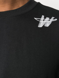 logo-print oversized T-shirt black/white cotton logo print to the side crew neck short sleeves drop shoulder straight hem Imported Composition Cotton 100% SIZE & FIT Model measurements Height 5 ft 11 in(1.8 m) Bust/Chest 31.49 in(80 cm) Hips 35.03 in(89 cm) Waist 23.62 in(60 cm) Measurement BUST 47.24 in(120 cm) FittingInformation This piece fits true to size. We recommend you get your regular size Cut for an oversized fit Made with a mid-weight fabric Washing instructions Machine Wash