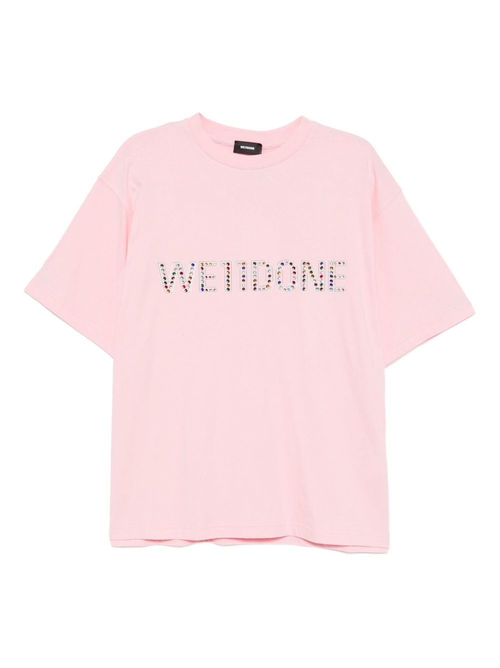 logo-print T-shirt Highlights - Blush pink - Crystal embellishment - Crew neck - Short sleeves Imported Composition Cotton 100% Washing instructions Hand Wash