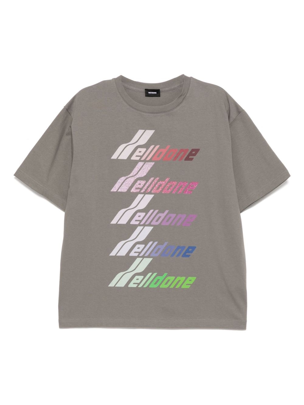 Multi Logo Print T-shirt Highlights - Light grey - Short sleeves - Crew neck - Rhinestone embellishment Imported Composition Cotton 100%