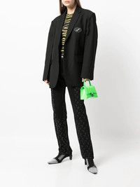 oversized suit logo-patch blazer Contemporary design runs par for the course at contemporary label We11done. Combining Eastern and Western influence, the label demonstrates oversized silhouettes and deconstructed styling with ease, as evidenced in this unisex logo patch blazer jacket. Imported Composition Polyester 65%, Rayon 35% SIZE & FIT Model measurements Height 6 ft 2 in(1.87 m) Bust/Chest 35.43 in(90 cm) Hips 36.41 in(92.5 cm) Waist 27.55 in(70 cm) FittingInformation This piece is unisex. Please take care when selecting your size Designed for a loose fit for men and an oversized fit for women Made with a mid-weight non-stretch fabric Measurement SLEEVE LENGTH 24.4 in(62 cm) LENGTH 29.92 in(76 cm) WAIST 43.3 in(110 cm) BUST 44.88 in(114 cm) Shoulder Width 19.29 in(49 cm) Washing instructions Read Manufacturer Guidelines
