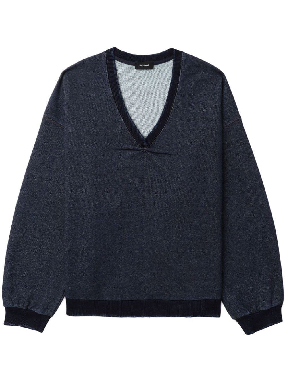 ruched-detail cotton sweatshirt Highlights - Navy blue - Cotton - Ruched detailing - V-neck - Drop shoulder - Long sleeves - Ribbed cuffs and hem - Straight hem Imported Composition Cotton 100% Washing instructions Read Manufacturer Guidelines