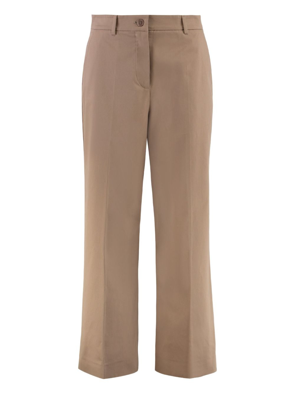 button-fastening straight trousers Highlights - Brown - Straight leg - Button fastening - Flat front Made in Italy Composition Cotton 96%, Elastane 4% Washing instructions Read Manufacturer Guidelines